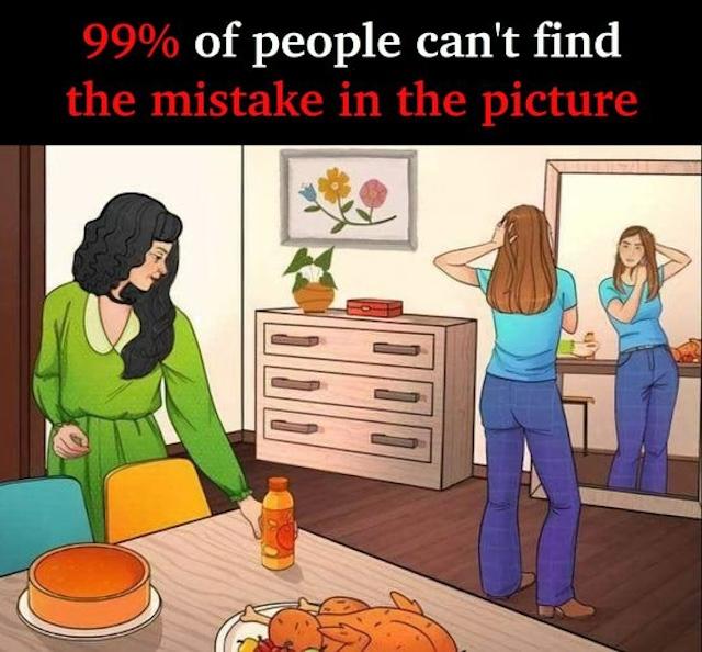 This intriguing image of a dining room scene holds a hidden mistake that only the most observant can spot. Are you ready to put your visual skills to the test? Take a close look and see if you can find the error that 99% of people miss. Let’s dive in and see who among us can spot the detail that defies logic!
