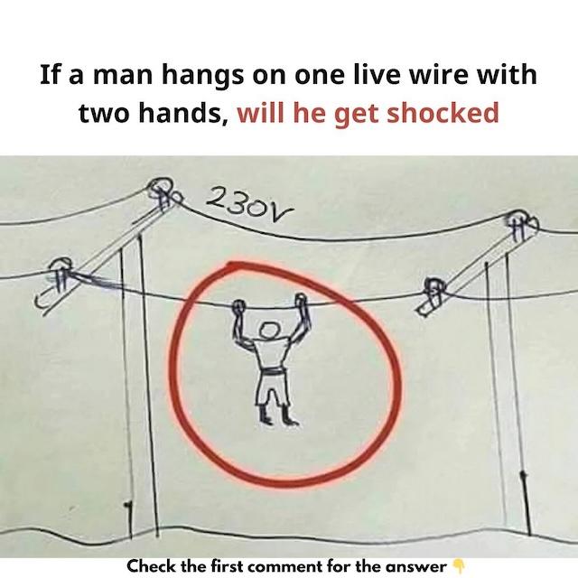Have you ever wondered what happens if a person hangs on a live electrical wire? Will they get shocked? This intriguing question combines physics and safety, making it a perfect brain teaser. Before reading further, take a moment to consider: What’s your answer? Comment below to share your thoughts before diving into the explanation!